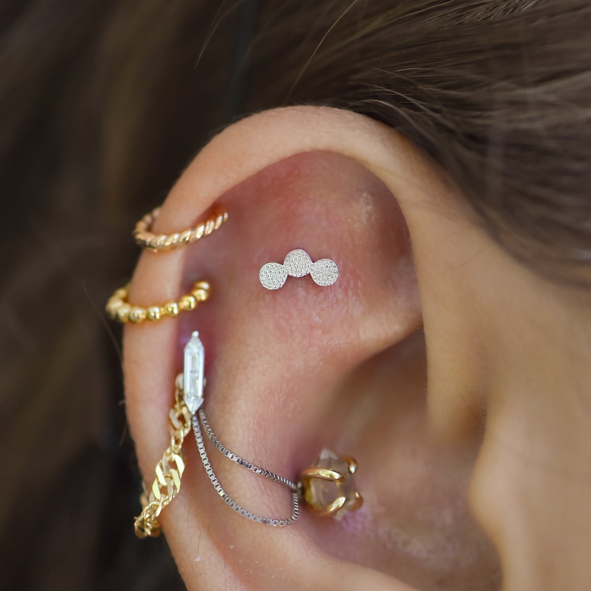 Pave Curved Cluster Threadless End