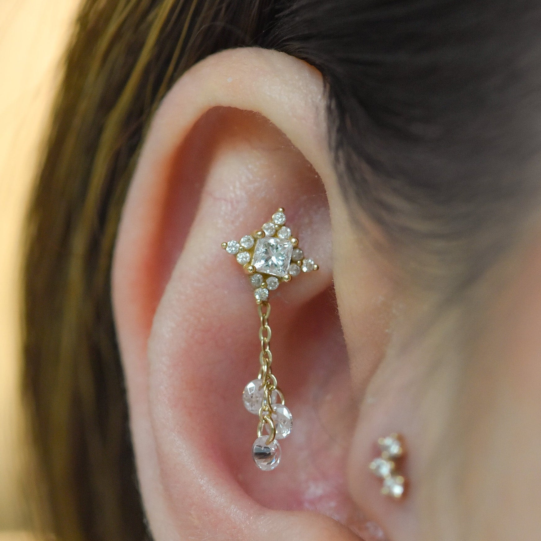 A dazzling starry end with a princess-cut center gem surrounded by clusters of lab-grown diamonds. It emanates an air of total magic and radiance.