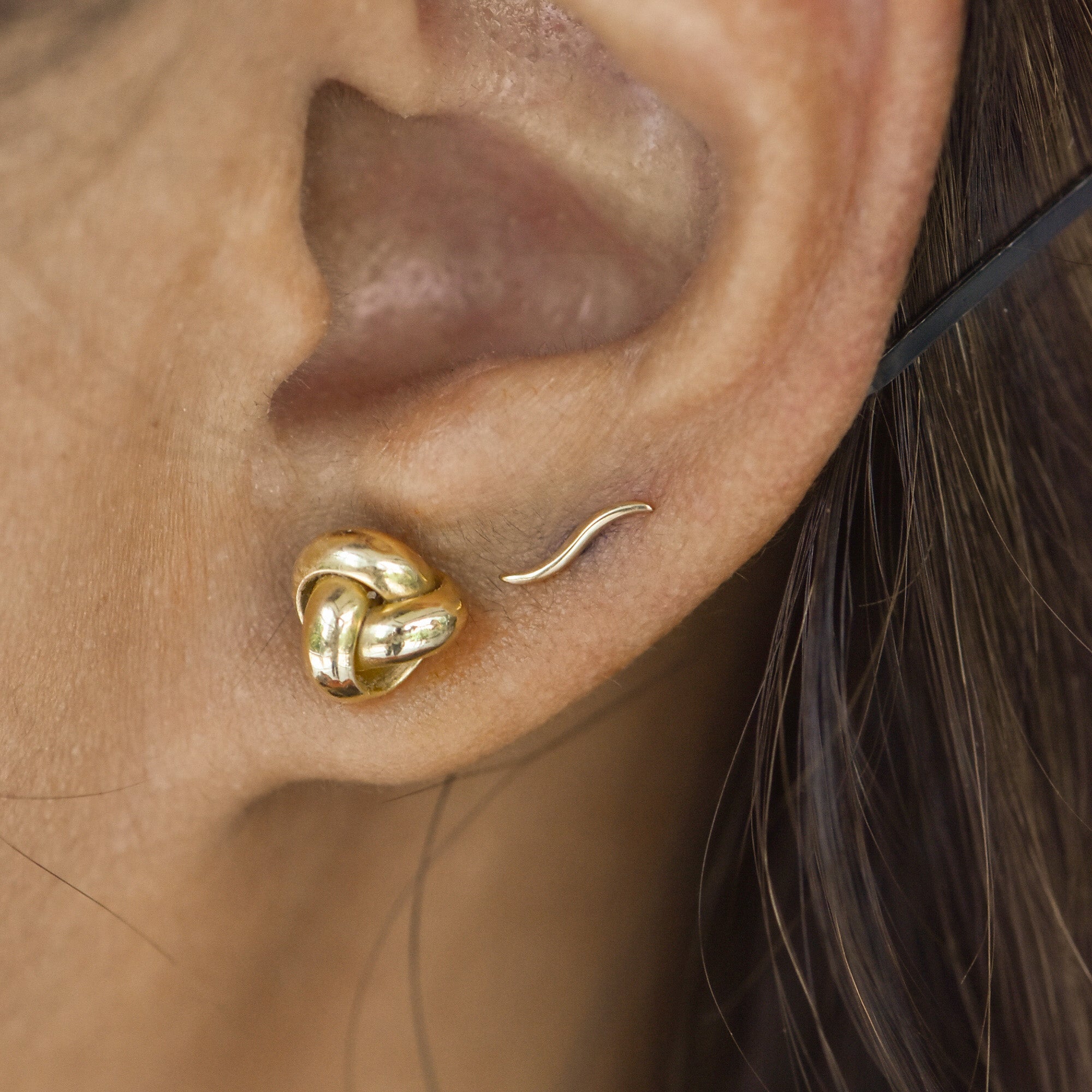 Wavelength features a sleek "S"-shaped gold line, a simplified take on our original Wisp design. This piece  complements the natural curves of your ears.