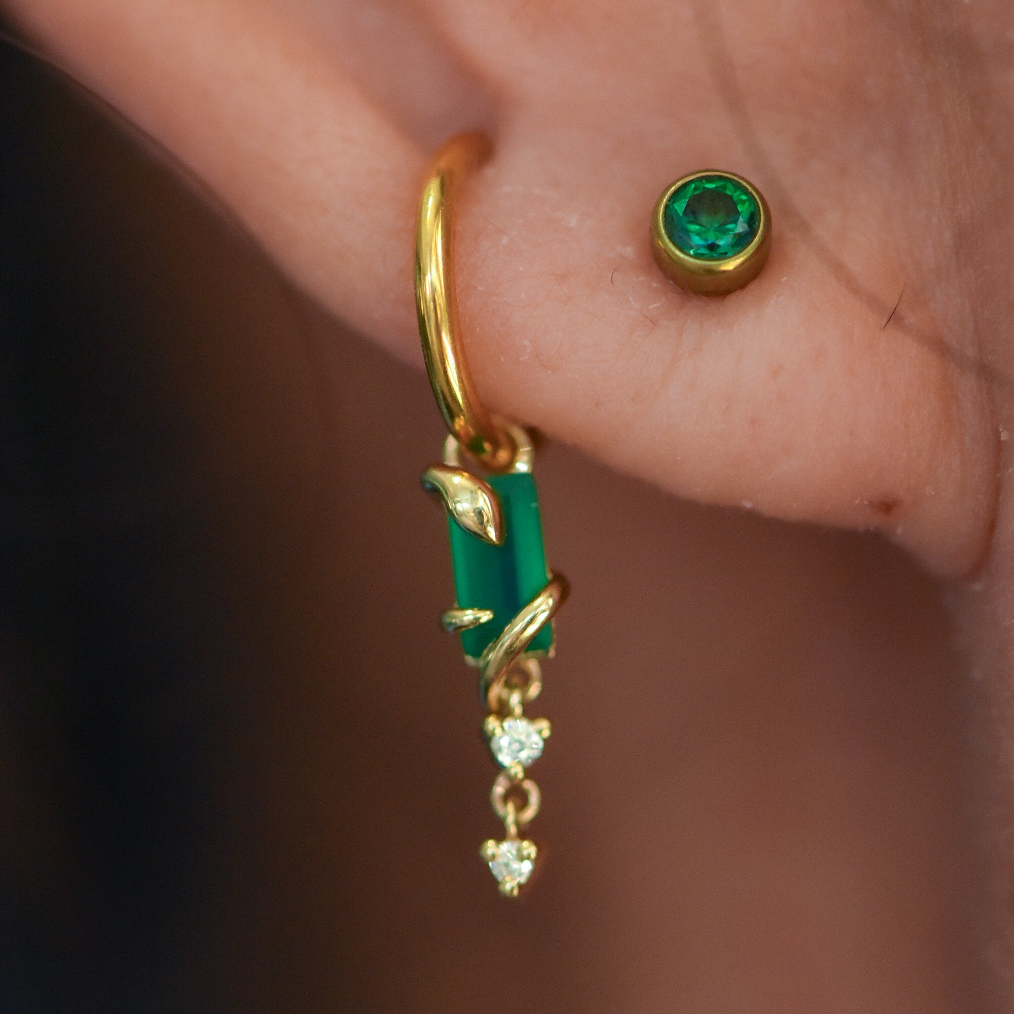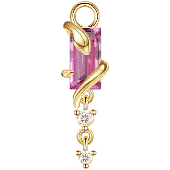 This charm features a sleek serpent holding a baguette gem and two round gemstones that glisten with every move.