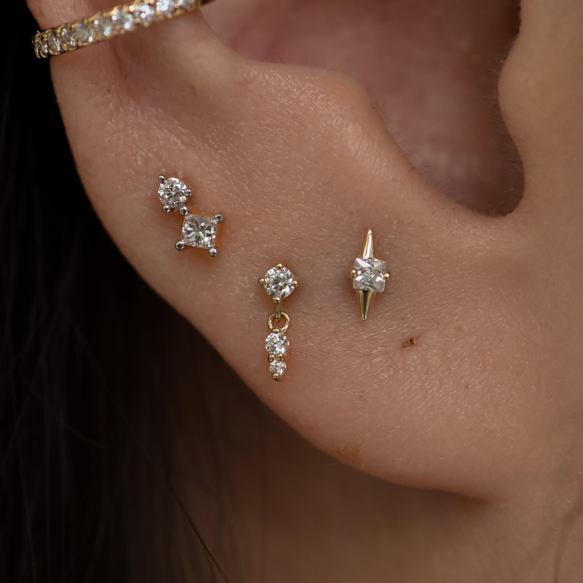 Embrace peak style with the High Noon Threadless End. Featuring three brilliant round Swarovski® zirconia gems, two of which dangle to create a radiant drop, this end is perfect for adding a touch of movement and sparkle to any accessory.