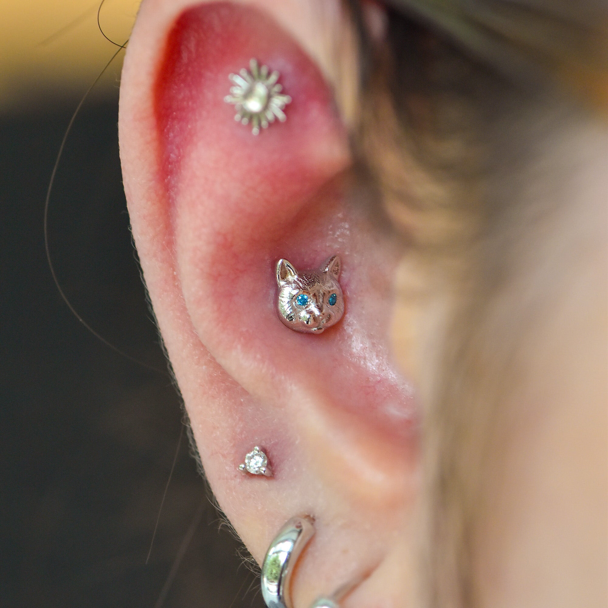 Catch everyone's eye with this playful Cat Threadless End. With a variety of gemstone eyes to choose from, cat lovers will adore this addition to their jewelry collection. Take a paws and add some fun to your style!