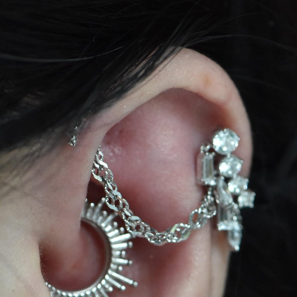 For those who want to stand out, the Diamond Cut Singapore Chain offers a shimmering look that catches the light perfectly. Its oversized design adds an extra touch of bold glamour. Use the jump rings to link two piercings together and create a gorgeous new look.