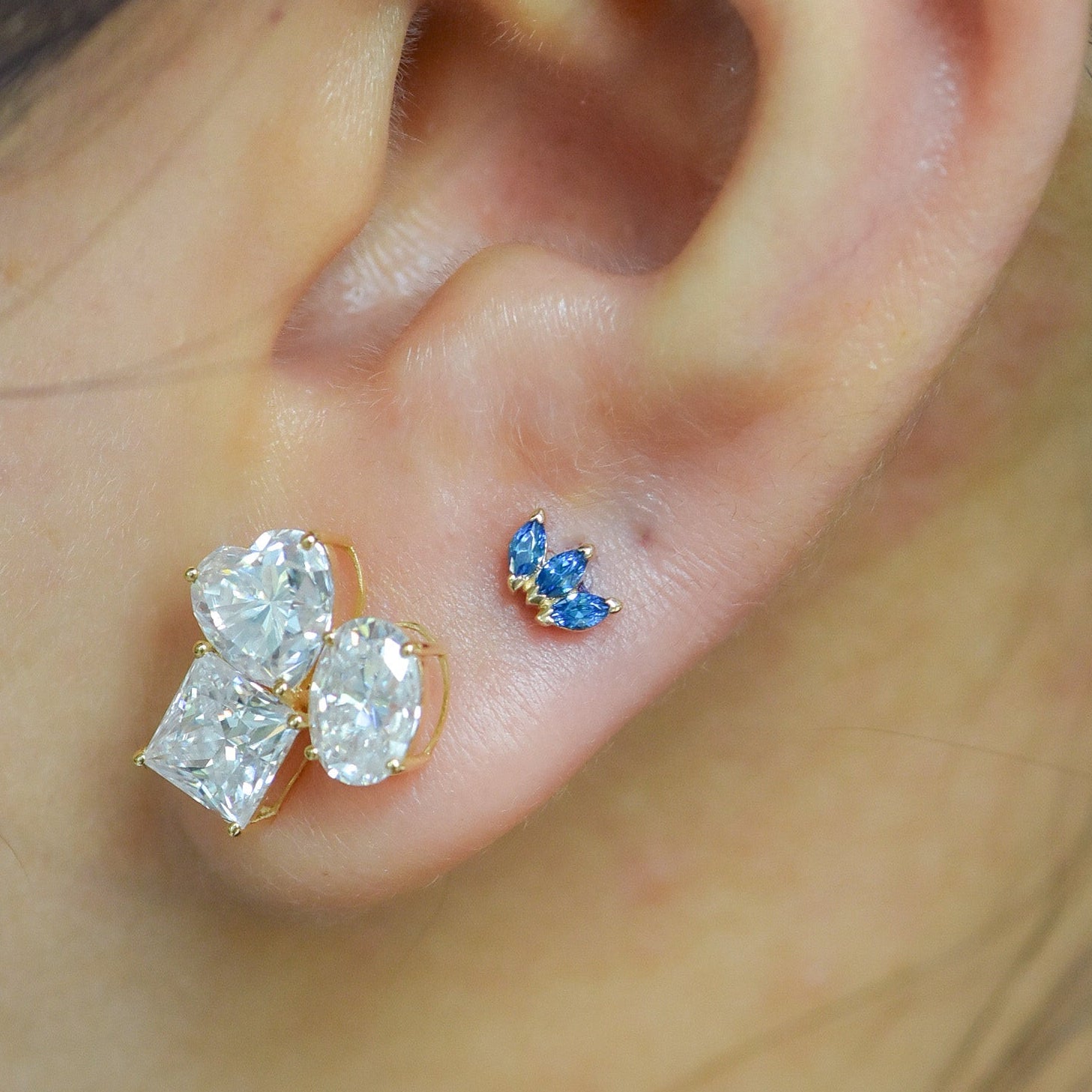 The Triple Marquise fan showcases three captivating marquise-cut stones, radiating elegance and strength in an array of colors.