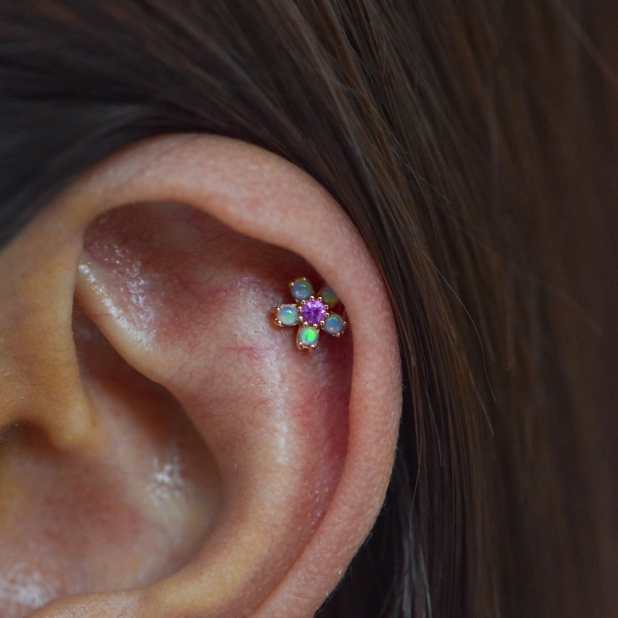 Treat yourself to floral bliss with the Cherry Blossom End! Featuring a variety of color combinations, this little blossom has style to spare! Its design will have you and all your ear piercings blooming!