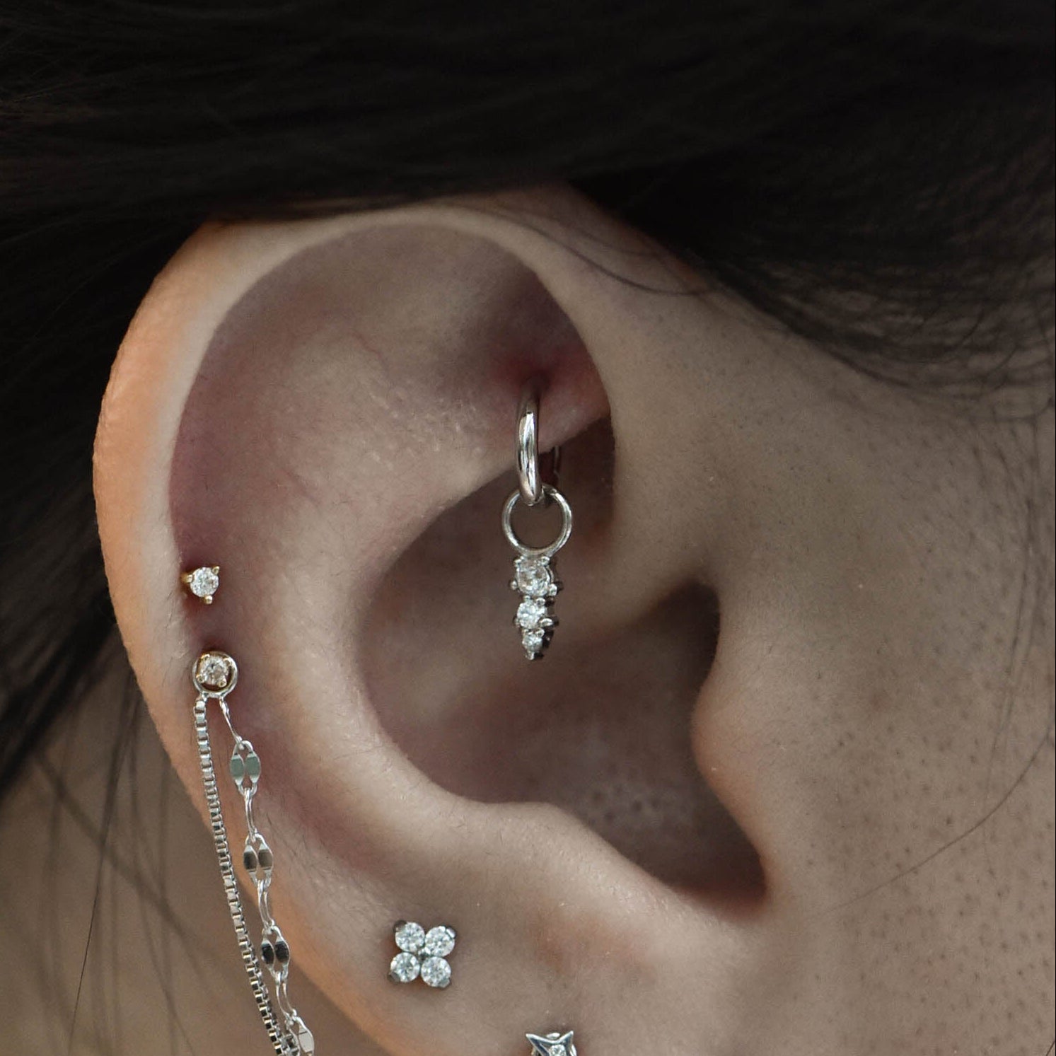 Overall size: 10mm with 1mm, 1.5mm and 2mm round cut gemstones