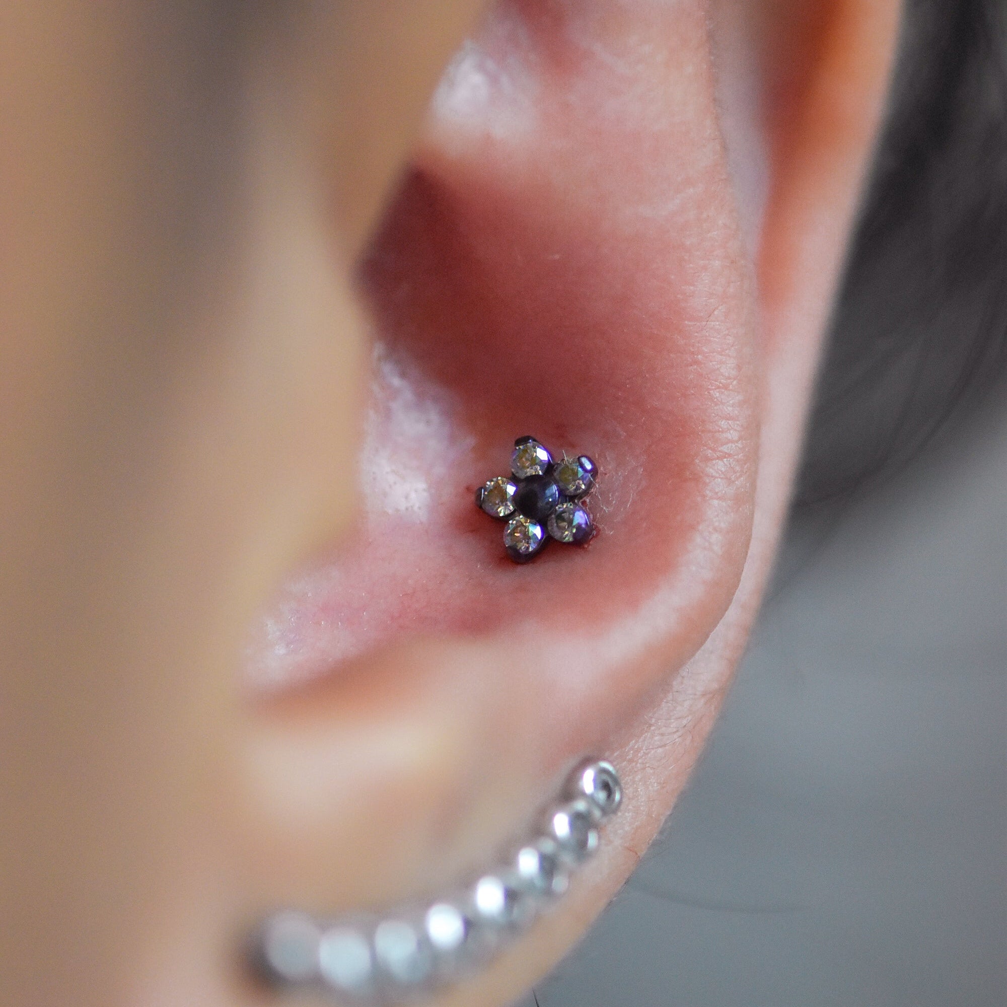 Elevate your piercing with the Neopetal Threadless End, featuring a charming flower design adorned with sparkling cubic zirconias. Offered in a range of vibrant colors, this piece blends playful elegance with expert craftsmanship. From classic clear gems to fun colors or even a rainbow –– you can choose the combination that reflects your personality.