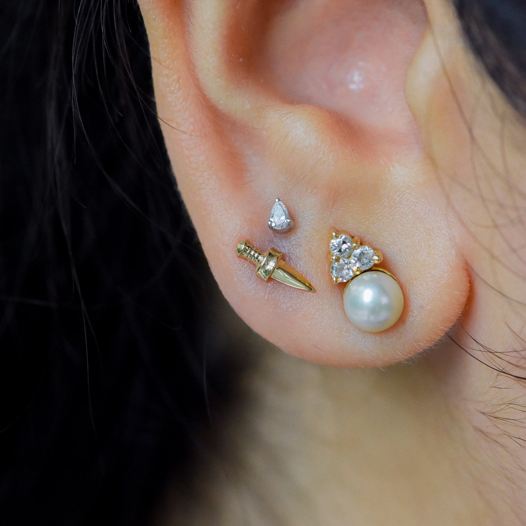 Introducing Arya – Tether’s signature dagger. Crafted from 14K solid gold, this threadless end embodies unwavering spirit. At 9mm long, it is versatile and sleek and designed to adorn multiple piercings. Whether you're navigating through life's challenges or making a bold statement, Arya is your reliable partner-in-crime.
