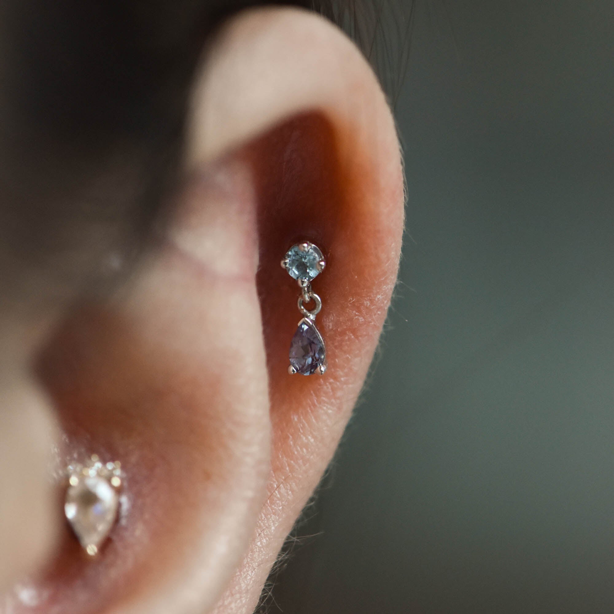 1 Round four prong setting and 1 Pear V prongs setting with 2x links of 1mm cable chain