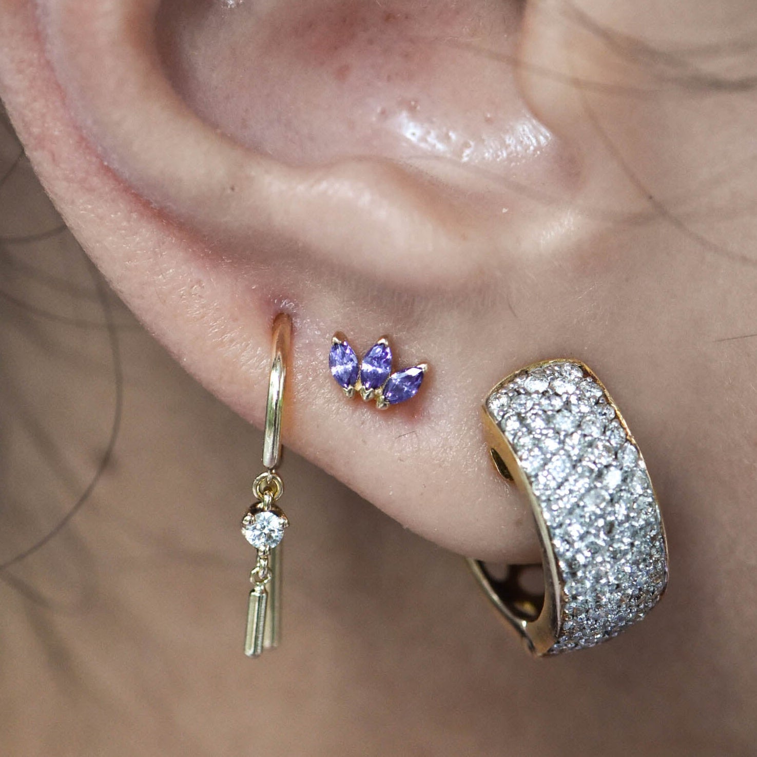 The Triple Marquise fan showcases three captivating marquise-cut stones, radiating elegance and strength in an array of colors.