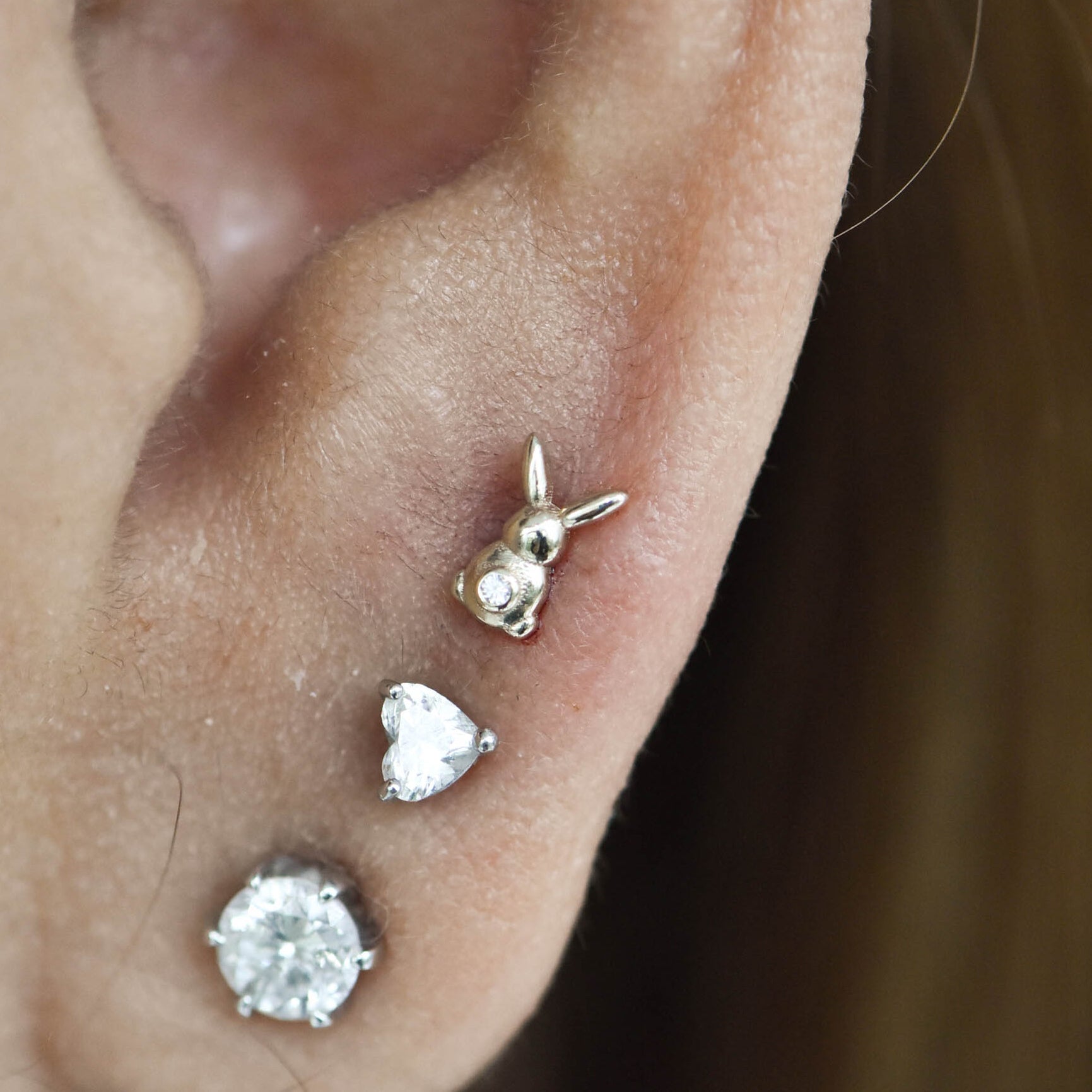 14K Gold Threadless End with Cubic Zirconia Gem - rabbit